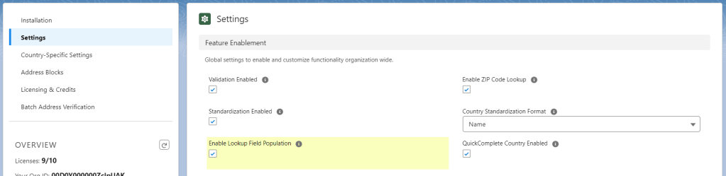 Once lookup fields have been created and bound to address blocks, the functionality needs to be enabled for the organization.