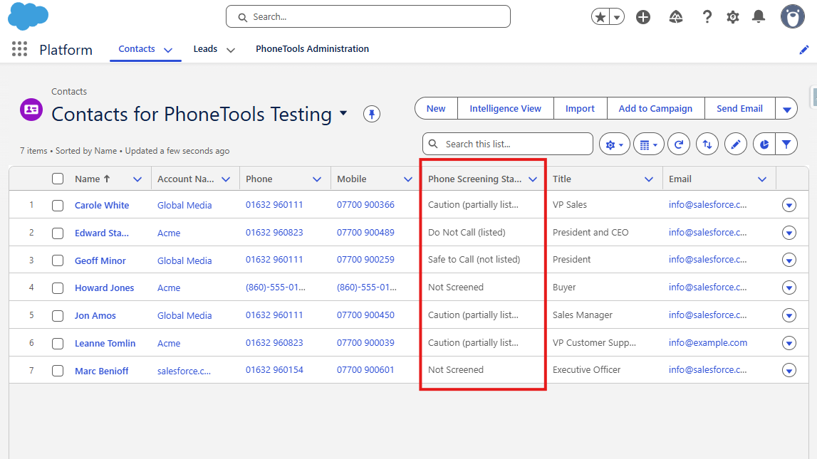 PhoneTools screens telephone numbers stored in your Salesforce org against the UK Telephone Preference Service (TPS) and corporate TPS (CTPS) databases – helping you to remain compliant with UK data-protection and marketing laws.